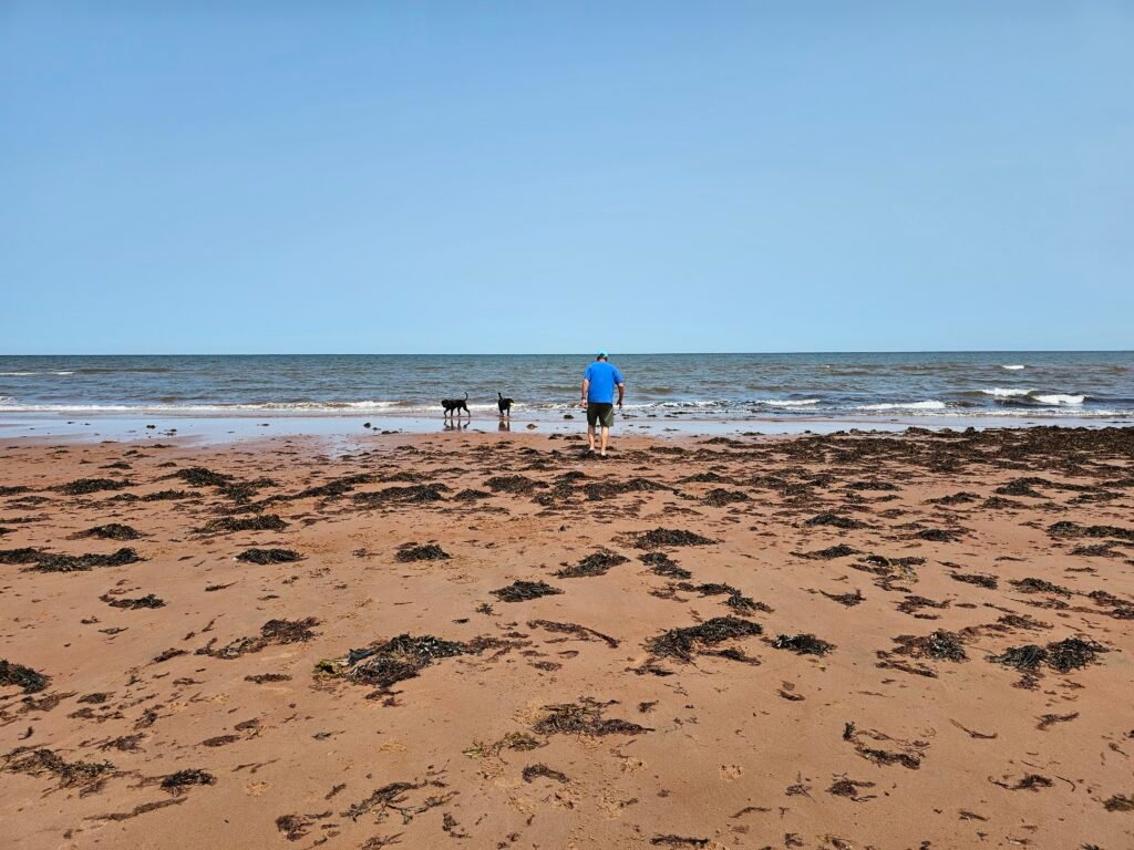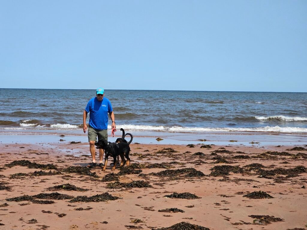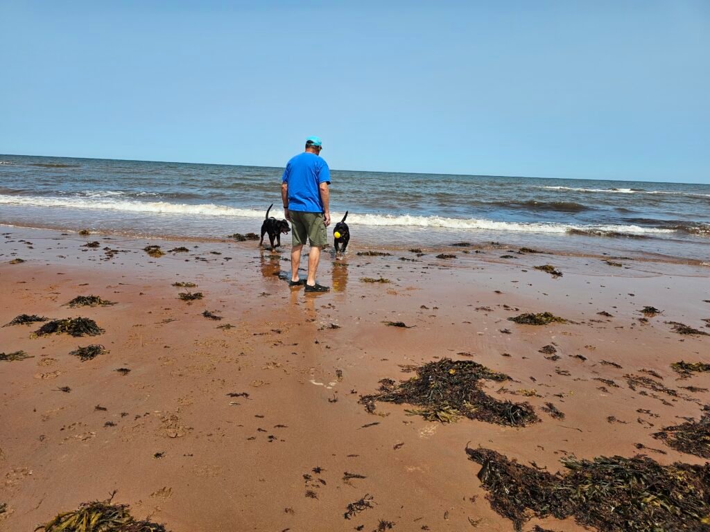 Xena’s playful spirit truly came alive during her first beach experience in Prince Edward Island, especially as she enthusiastically engaged with the ocean. The moment we arrived, her excitement was palpable. While Kojak appeared more cautious and observant, Xena dashed towards the incoming waves, reveling in the salty spray and soft sand beneath her paws. Her instinctive love for water was apparent as she splashed through the shallow surf, a stark contrast to Kojak’s hesitant approach.